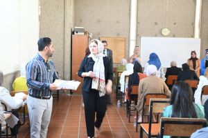Supervised by The Dean of the College of Education for Women, Prof. Dr. Athmar Shaker Majeed Al-Shatri. On Tuesday, June. 6, 2023, the College of Education for Women conducted the competitive exam for postgraduate applicants for higher diploma, master’s and doctoral studies for the academic year 2023-2024. (572) students distributed in the nine departments of the college participated in the competitive exams, and the exams witnessed the visit of the respected Dean of the College to see the course of the competitive exam and the quality of the questions.