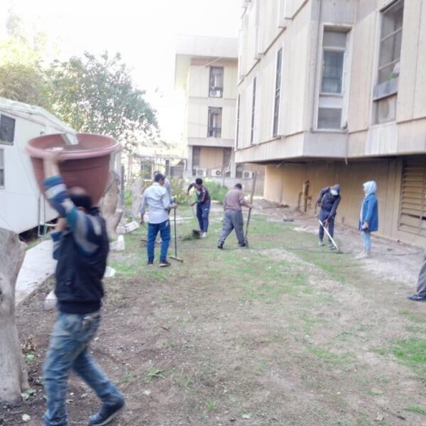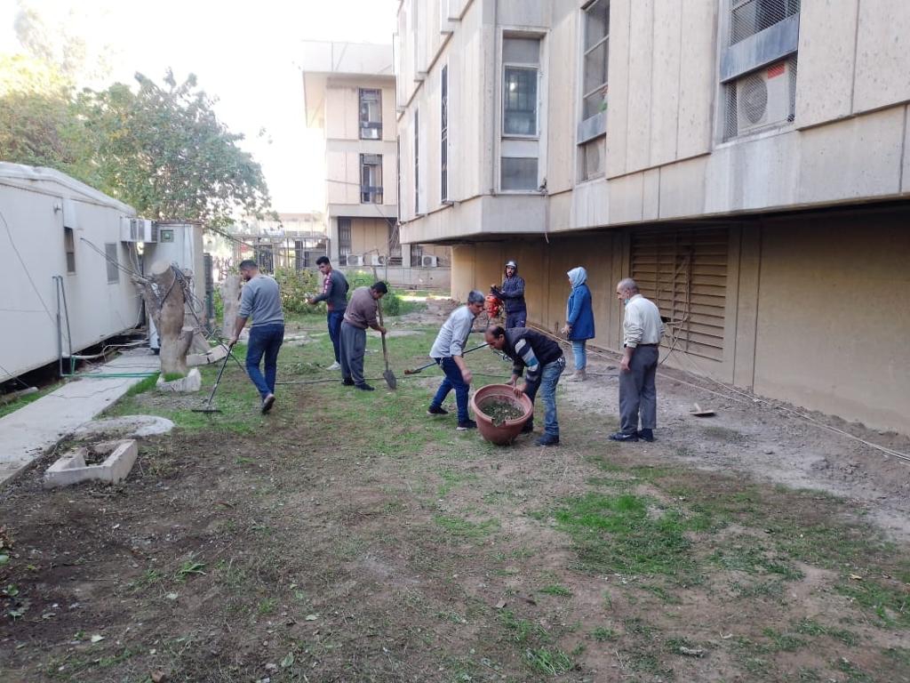 Sponsored by The head of University of Baghdad Dr. Muneer Al-Saadi, and supervised by the dean of College of Education for Women Prof. Dr. Athmar Shaker Majeed Al-Shatri. An extensive cleaning campaign has been launched. Included removal of harmful trees and plants in abandoned and many parts throughout the College and enhancement of sustainable development requirements in environmental conservation.