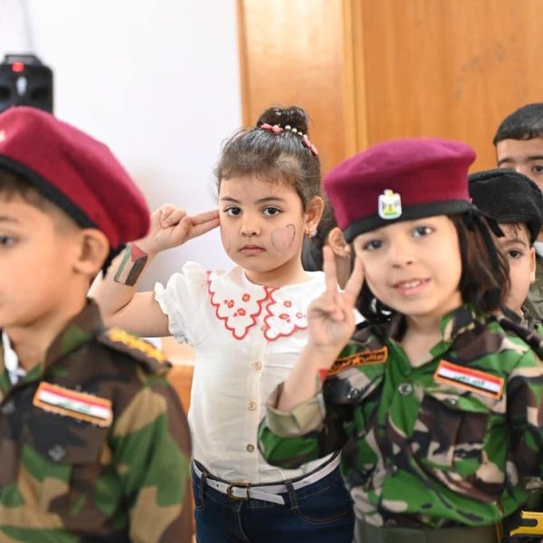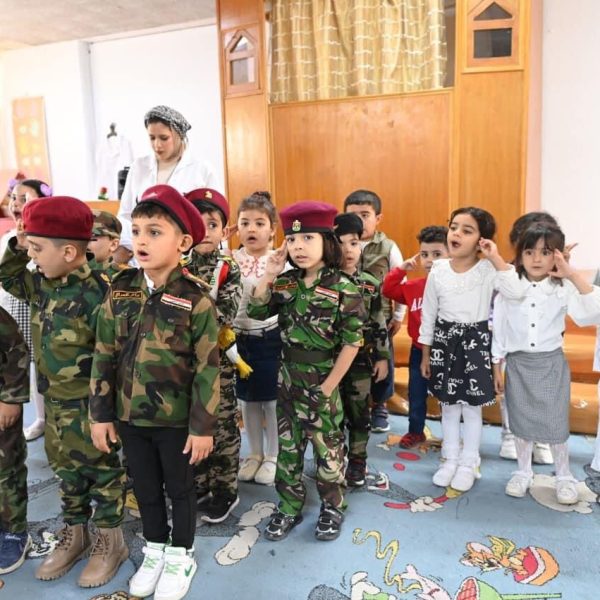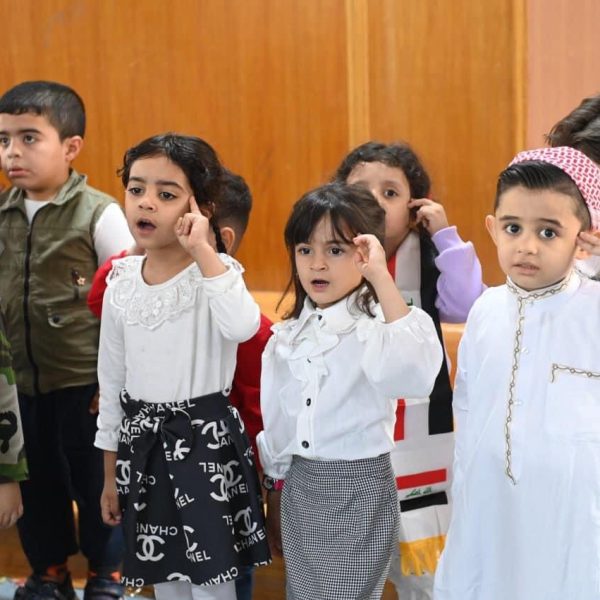 Part of the activity of the Applied Kindergarten to advocate for the children of Gaza in Palestine, which was held by the Kindergarten Department at the College of Education for Women on Sunday morning, 10/22/2023.