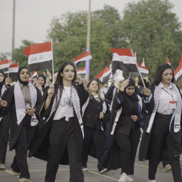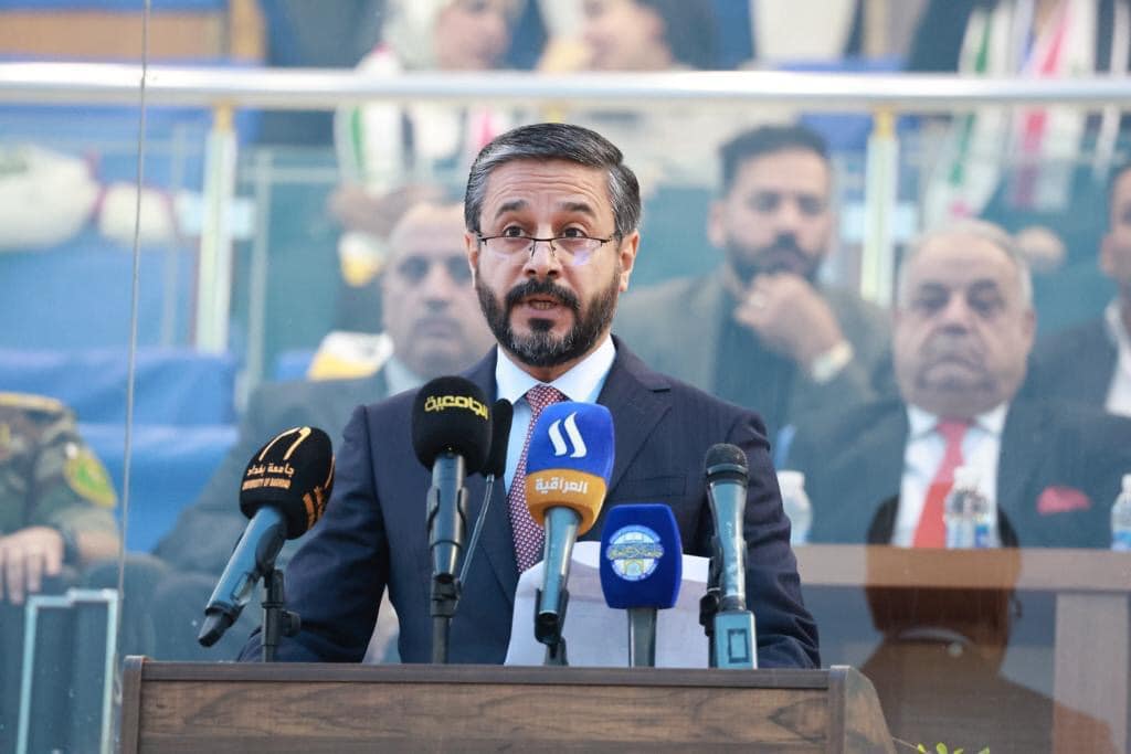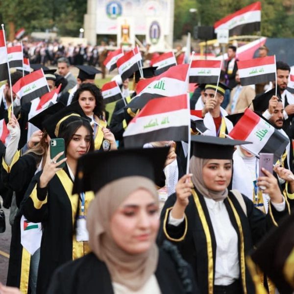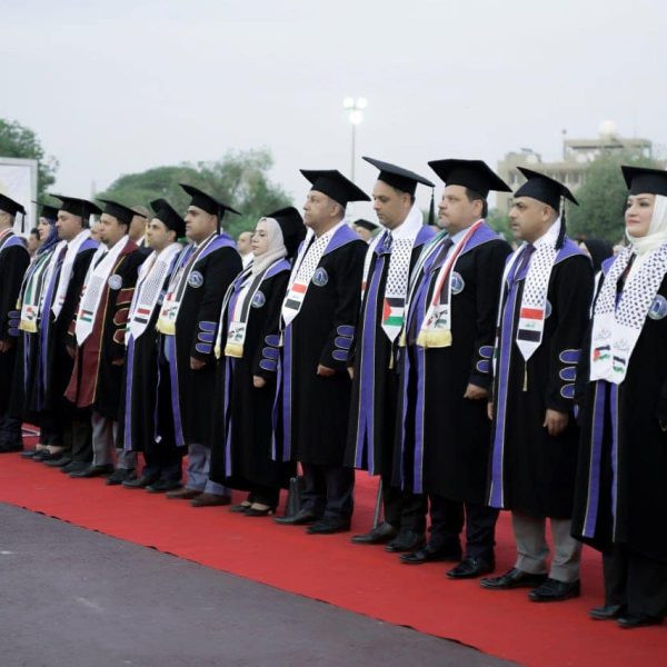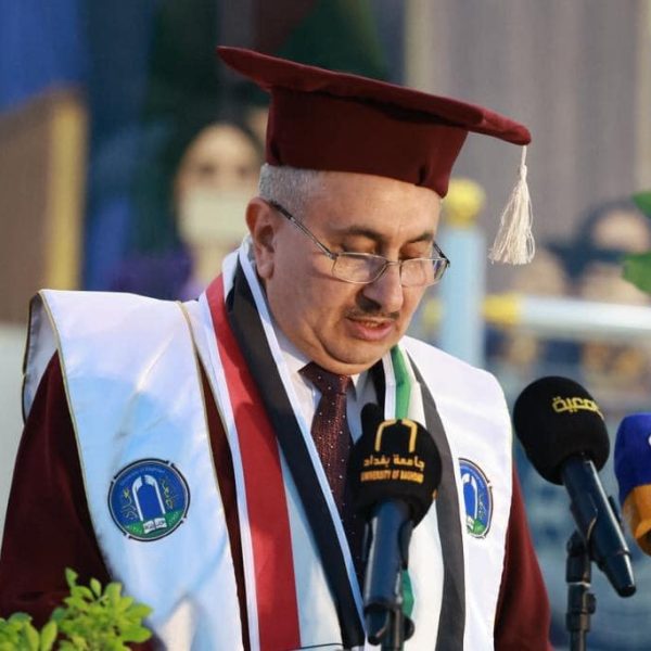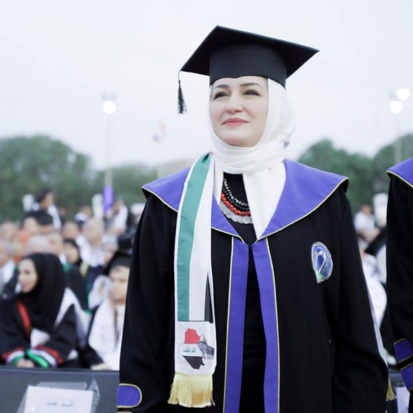 The Dean of the College of Education for Women, Asst.Prof.Dr. Athmar Shaker Majeed AL-Shatri, and members of the College Council, graduate students and their families participated in the central graduation ceremony organized by the University of Baghdad for the sixty-sixth session under the slogan “Al-Aqsa Flood” for the academic year 2022-2023 in the presence of the Minister of Higher Education and Scientific Research, Dr. Naim Al-Aboudi, on Saturday, 11/25/2023, which was held in the gardens of the College of Physical Education and Sports Sciences with a large official and academic presence.