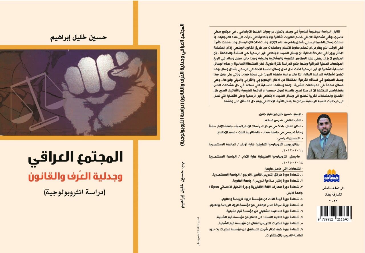 Asst. Lect. Hussein Khalil Ibrahim, Dept. of Sociology, has published a book titled Iraqi Society and the Dialectic of Custom and Law: An Anthropological Study. The book is published in Al-Dhifaf publishing house, Baghdad and Sharjah, 2022. In 300 pages, the book describes and analyses social control of urban communities through local norms. This is examined in relation to the social and cultural changes after 2003.