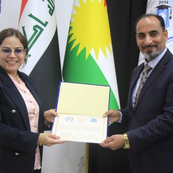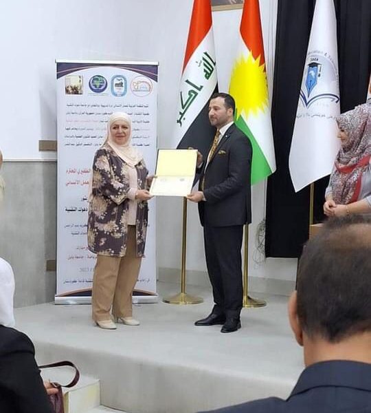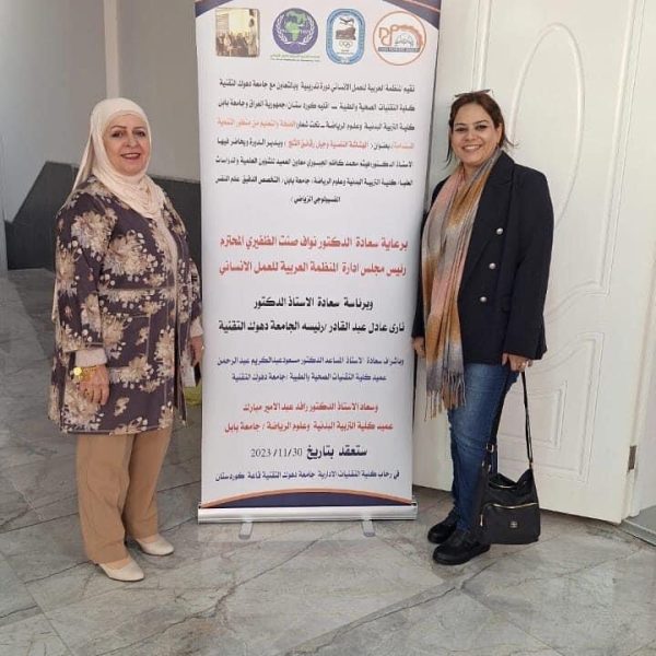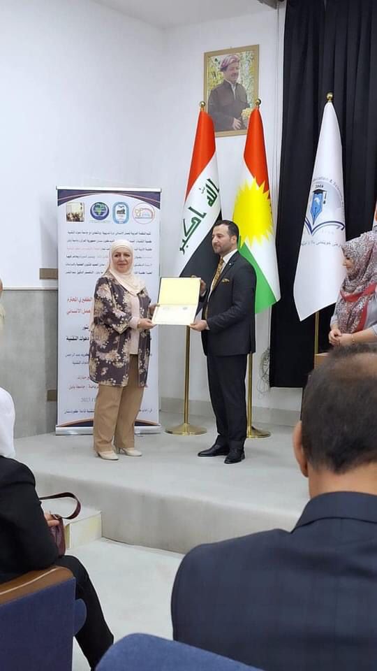 Prof. Dr. Rufaida Kamal Abdul Majeed, and Lect.Dr. Azra Abdul Hussein Nasser, two teachers from the Department of English, participated in the scientific course titled “psychological fragility and snowflakes generation” sponsored by the Arab Organization for Humanitarian Work in cooperation with the Technical University of Duhok and the University of Babylon, which was held in the Kurdistan Hall, Faculty of Administrative Technology, on Thursday, 30/11/2023 under the slogan “Health and Education from the Perspective of Sustainable Development”, and they received a certificate of thanks and appreciation for their active and distinguished presence in cycle,