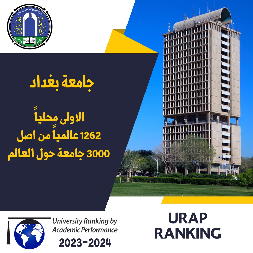 The University of Baghdad announced today that it topped the University Ranking by Academic Performance (URAP), where Iraqi universities came in the following ranking: