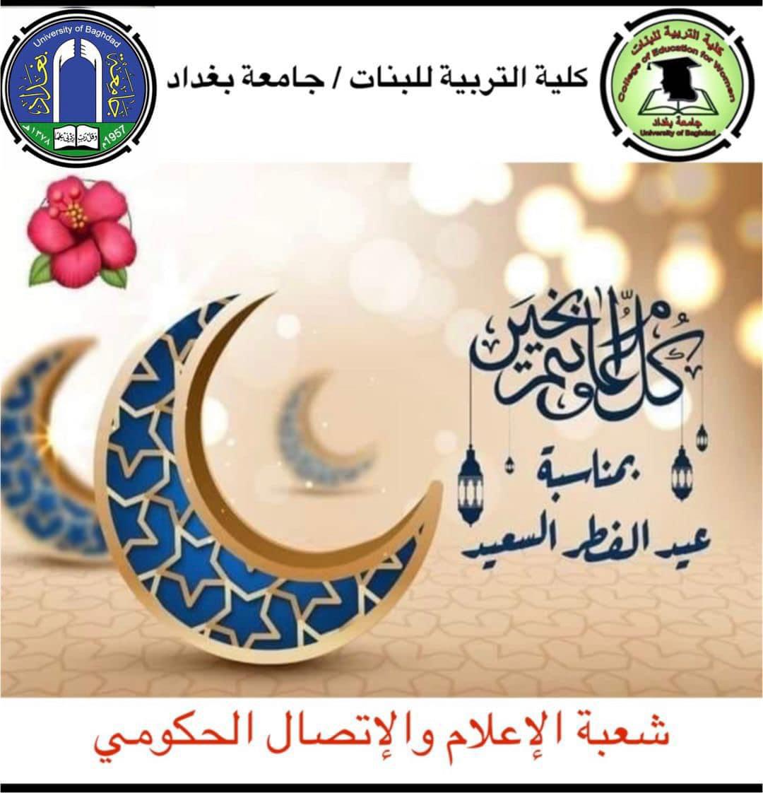 The family of the College of Education for Women, represented by its dean, Assistant Professor Dr. Athmar Shaker Majeed Al-Shatri, members of its esteemed council, professors, affiliates and students in particular, and to our dear Iraqi people and the world in general, on the occasion of Eid Al-Fitr, calling on the Allah Almighty to bless our beloved people with good and blessing