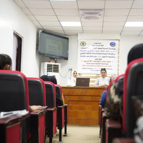 Sponsored by the Dean of the College of Education for Women Dr. Athmar Shaker Majeed AL-Shatri, In cooperation with the lifelong learning Unit, the Sociology department held the scientific workshop titled “Moral deviation and its impact on human security”, on Tuesday, 16/4/2024 at eleven in the morning, in the department hall. The workshop aimed to Definition of deviation according to social scientists, the most important of which is ‘Emile Durkheim’, who linked it to the concept of alienation (Anomie) with clarification of practical examples of it.