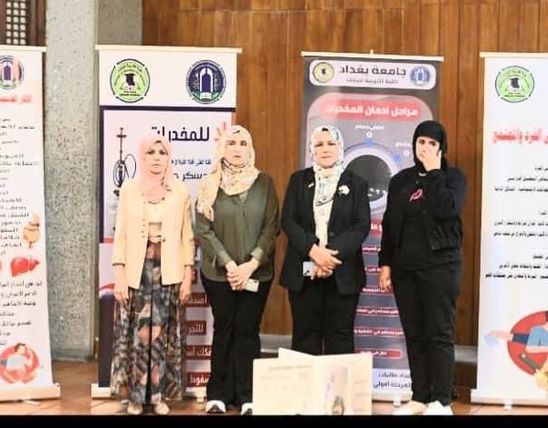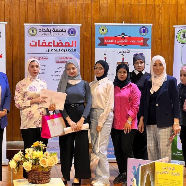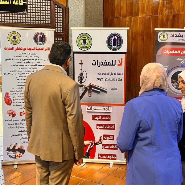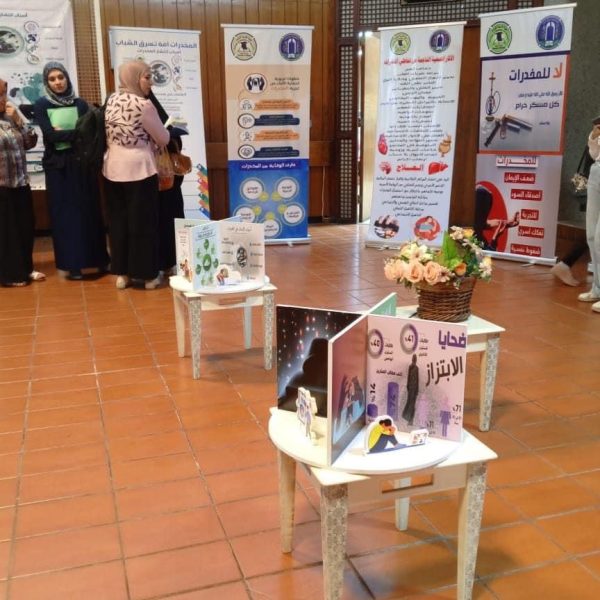 Sponsored by the Dean of the College of Education for Women Dr. Athmar Shaker Majeed AL-Shatri, The Counseling Unit, in cooperation with the departments of (Home Economics – Kindergarten) and Student Activities, held the awareness exhibition on (Your awareness of community protection) on Tuesday morning, 23/4/2024, in the courtyard of Al-Mustafa Hall at 11:00 am, and in the presence of the Assistant Dean for Administrative Affairs, Prof. Dr. Ahmed Hashem Muhammad. The exhibition aimed to shed light on the phenomenon of drugs and their spread among university students, identify the side effects of drugs, educate students about the seriousness of electronic extortion and drugs and the damage caused by them, and help students understand the social environment