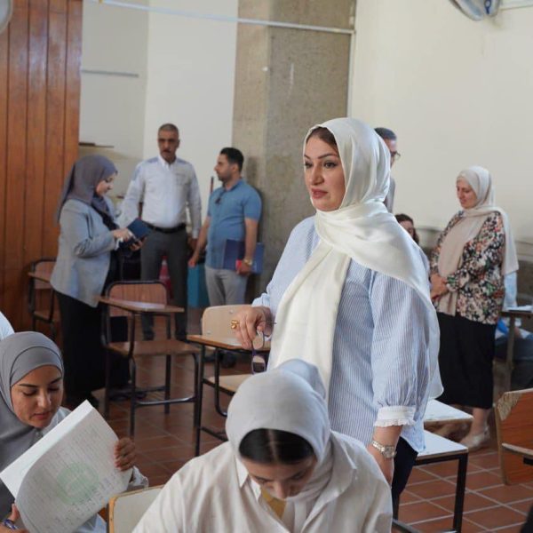 On Saturday, 11/5/2024, the final exams of the College of Education for Women – the first round of the academic year 2023-2024 began in all scientific departments and for the morning and evening studies. Over the two days of its inception, the respected Dean of the Faculty, Prof. Dr. Athmar Shaker Majeed Al-Shatri, accompanied by the assistants, the Director of the Media Division and the Director of the Services Division, inspected the progress of the final exams and to see the flow of performance in the exam halls, stressing the need to adhere to the exam instructions and secure all the requirements to provide the appropriate atmosphere for its students, and to overcome the obstacles and difficulties facing students to ensure their optimal success, and the administrative and technical preparations made by the Dean of the College and the assistants were reflected Early before the exams, the attendance exams began in this honorable manner, which reflected the reputation of the College of Education for Women with its respected teachers and dear students.