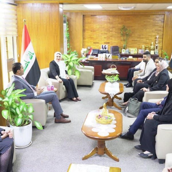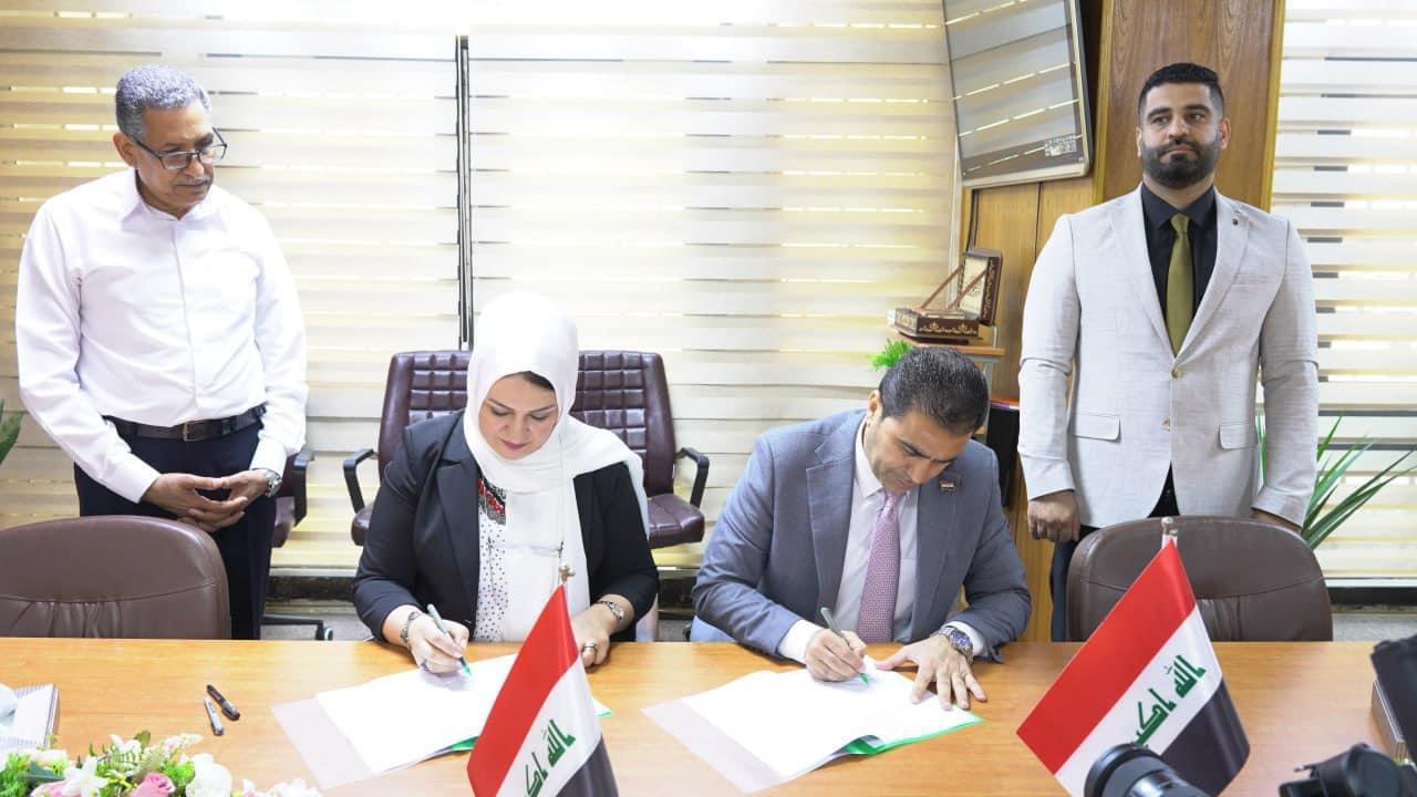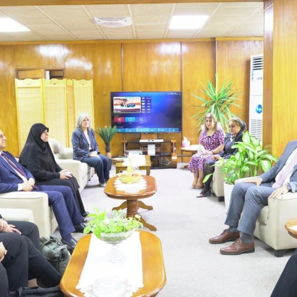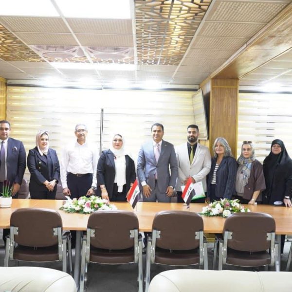 The Dean of the College of Education for Women, Prof. Dr. Athmar Shaker Majeed Al-Shatri, received on Wednesday morning, 10/7/2024, a delegation from Al-Farahidi University for Joint Scientific Cooperation. The Dean of the College discussed, with the delegation of Al-Farahidi University, to open the horizons of joint scientific cooperation, and the signing of the agreement was attended by Prof. Dr. Athmar Shaker Majeed Al-Shatri, Dean of the College of Education for Women, Prof. Dr. Hussein Sebhan, Dean of the Faculty of Education, Al-Farahidi University, and the assistants of the deans and heads of scientific departments. The agreement included strengthening the framework of scientific cooperation in the various fields stipulated in the agreement, in order to develop strategic plans and comprehensive cultural, scientific and field programs, develop contexts responsible for exchanging experiences between the two parties, use the expertise of professors of the College of Education for Women in the field of scientific promotions, unify curricula in the corresponding specializations in some scientific departments, and hold seminars, scientific workshops and joint research.