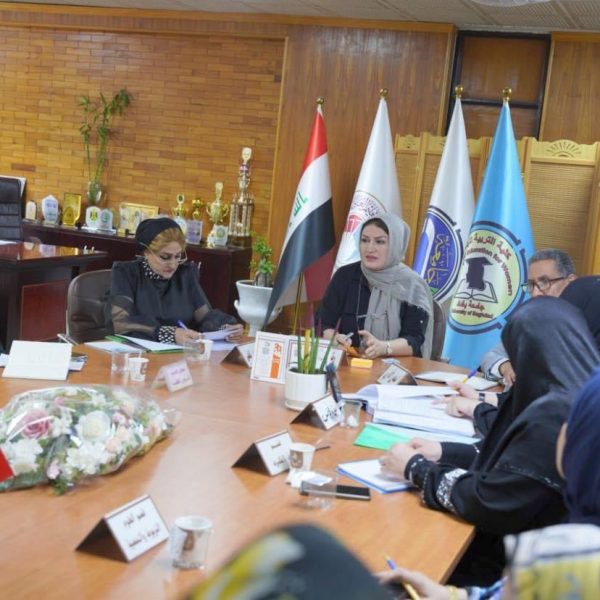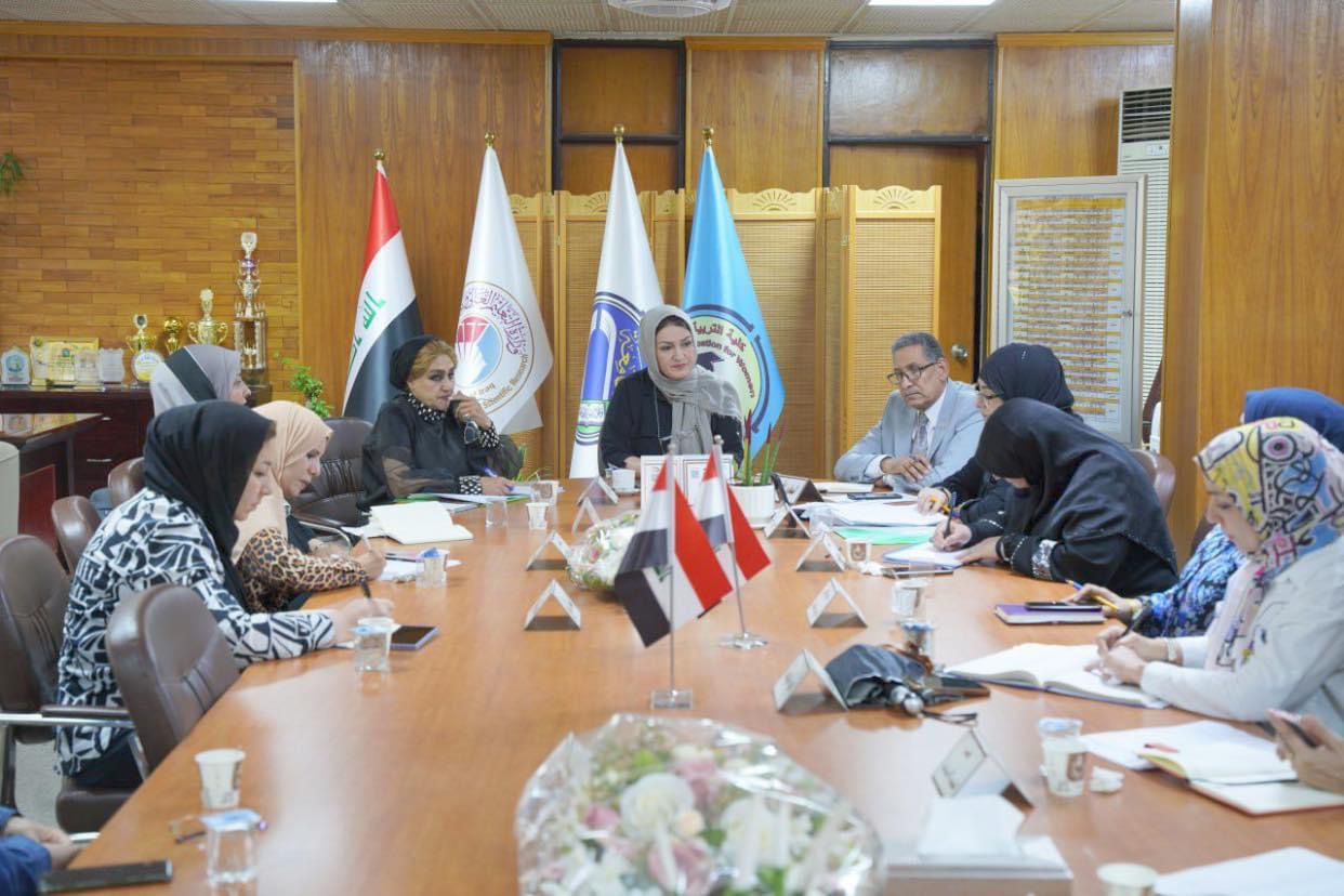 The Council of the College of Education for Women held its twenty-fifth regular session under the chairmanship of Mrs. Dean of the College, Dr. Athmar Shaker Majeed Al-Shatri, for the academic year 2023-2024, and in the presence of all members of the Council, on Tuesday morning, 23/7/2024, to discuss the matters on the agenda of the session.