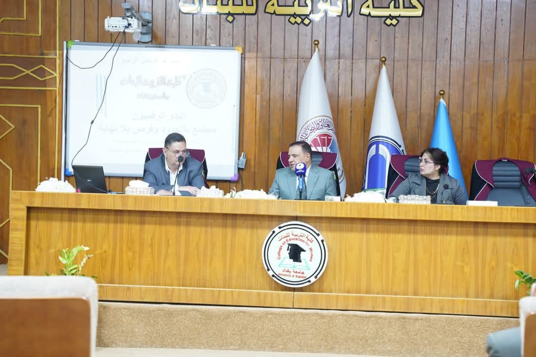 Under the supervision of the Dean of the College of Education for Women, Prof. Dr. Athmar Shaker Majeed Al-Shatri, the Department of Computer, in cooperation with the Scientific Affairs Unit, held its thirty-second scientific symposium tagged with: ((Digital Transformation and Future Professions))at eleven o’clock in the morning, on Monday, 20/1/2025, and at Al-Mustafa Hall, attended by a group of professors and students of the department, and lectured by Prof. Dr. Abdul Khuraibit Jassim from the University of Basra, College of Science, and a group of professors of the department.