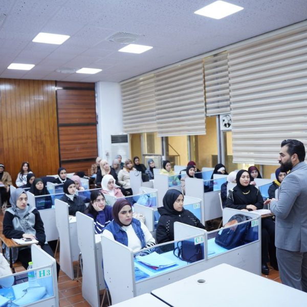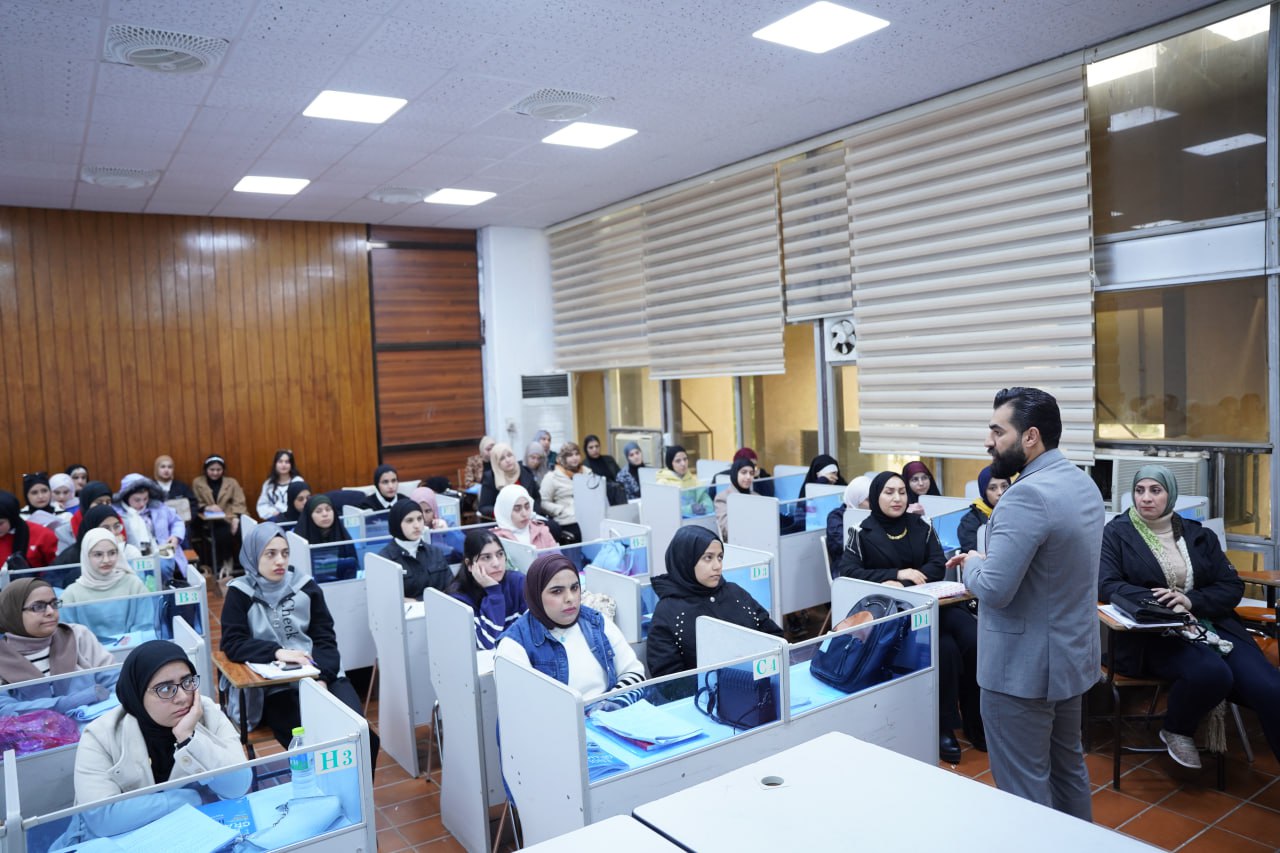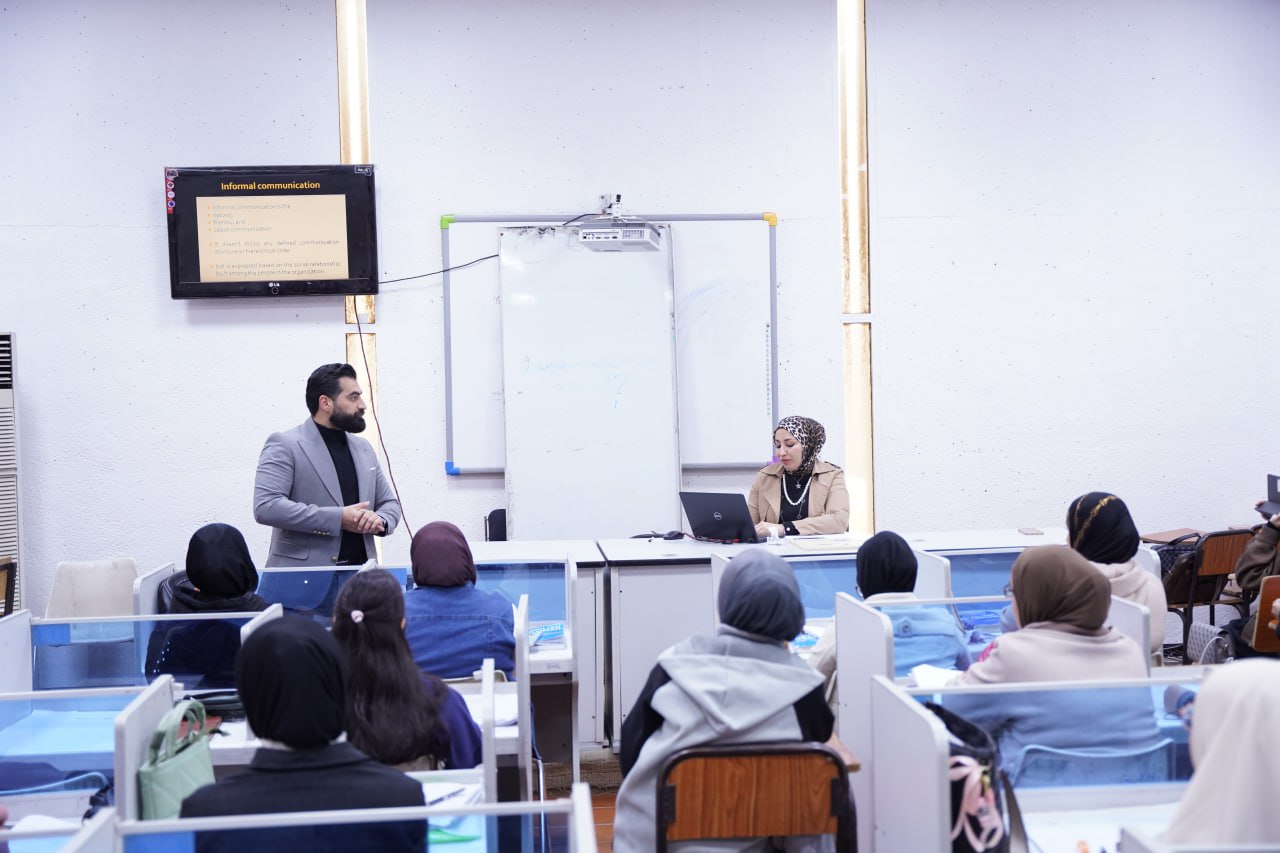 Under the supervision of the Dean of the College of Education for Women, Assistant Professor Dr. Athmar Shaker Majeed Al-Shatri, and the supervision of the respected Head of the English Language Department, Asst. Prof. Dr. Wafaa Abdel Saheb, the department, in cooperation with the Continuing Education Unit, held a training workshop tagged: “Interaction in the Social and Formal Environment: Developing English Language Skills in Formal and Informal Conversations”, on Sunday 12-1-2025, at the Sound Lab Hall of the English Language Department, lectured by Inst. Alaa Yassin Hassan, and Asst. Inst. Hassan Thamer Hassan.