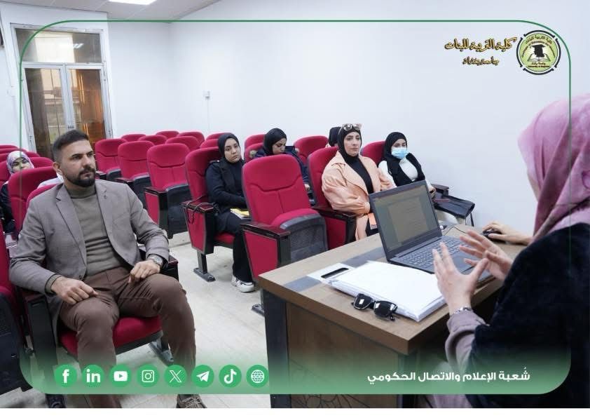 Under the supervision of the Dean of the College of Education for Women, Prof. Dr. Athmar Shaker Majeed Al-Shatri, and under the supervision of the Director of the Information and Technology Division, Asst. Inst. Hassan Thamer Hassan, the Division, in cooperation with the Continuing Education Unit, held a training workshop tagged with: ((How to Write a Graduation Research Paper)) on Wednesday, 15/1/2025 at 1 pm in the Graduate Studies Hall, Department of Arabic Language, attended by a group of faculty professors, and students, and lectured by: Asst. Inst. Duha Yousef Abbas, and Asst. Inst. Sarah Abdul Jalil Qasem.