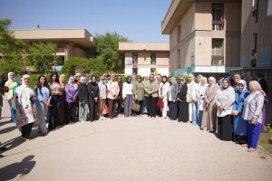 Driven by a national effort to promote environmental awareness, the Dean of the College of Education for Women and Director of the Center for Women’s Studies at the University of Baghdad, Prof. Dr. Athmar Shaker Majid Al-Shatri, and the head of the Women’s Affairs Unit, M.M. Hind Abdul Saeed, organized a large-scale volunteer campaign to plant trees in the courtyards and corridors of the College on the morning of Tuesday, October 7, 2025.