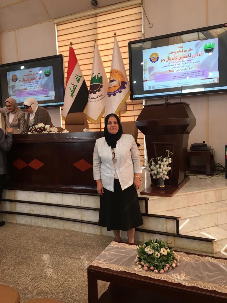 Professor Bushra Fadhil Salih has been selected as a member in the Fifth Industry Ministry jury for Patents and Industrial Designs, organized by The Academic Research Institution, on November 9, 2022.