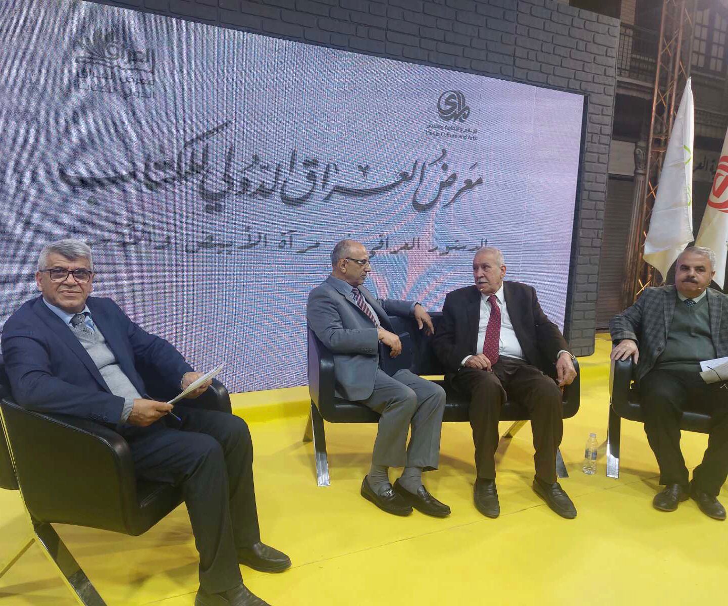 Prof. Dr. Abdullah Hameed Al-Etaby conducted a dialogue session on Iraqi institution at Baghdad International fair, on December 8. Al-Etaby hosted the former minister and member of the Iraqi Governing Council the Judge Wael Abdul Latif, the judge Hadi Aziz, and Dr. Adil Taqi. Abdul Latif spoke about the process of creating the 2005 Constitution, Aziz referred to the weaknesses of the 2005 Constitution, and Dr. Taqi elaborated on constitutional history in Iraq.