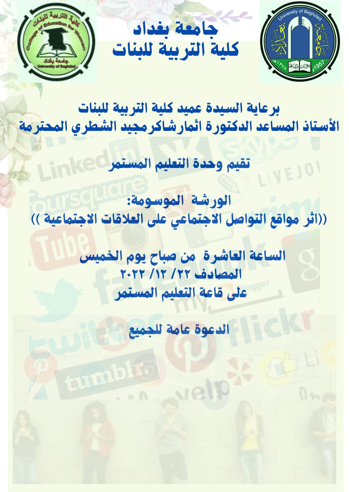 Lifelong Learning Unit organized a workshop about the Effects of Social Media on Relationships, at Lifelong Learning Hall, on Thursday, December 22. Lect. Sahar Rassul and Lect. Zenah Dawood elaborated on the negative and positive effects of social media on relationships. The workshop aimed at educating family members about the powerful influence of social media on the lives of its members. Lect. Sahar Rassul and Lect. Zenah Dawood highlighted the negative impacts of social media, and the importance of spending leisure time developing one’s talents and practicing sport.
